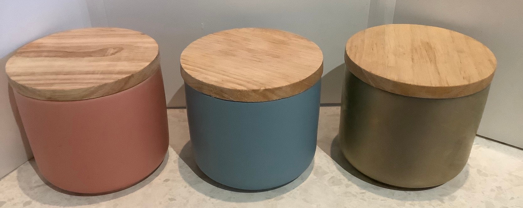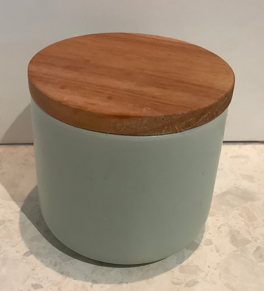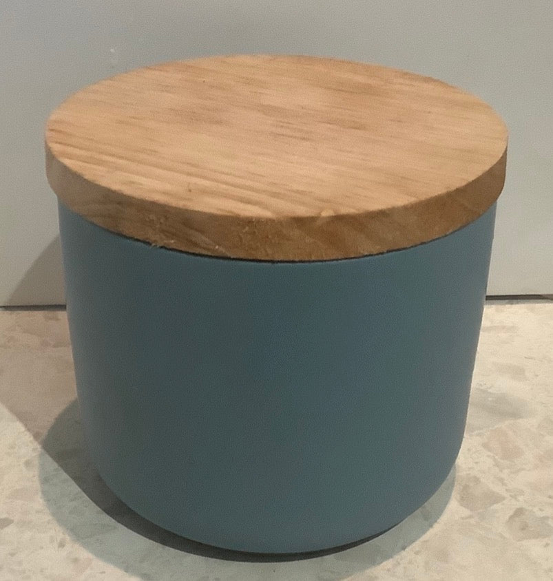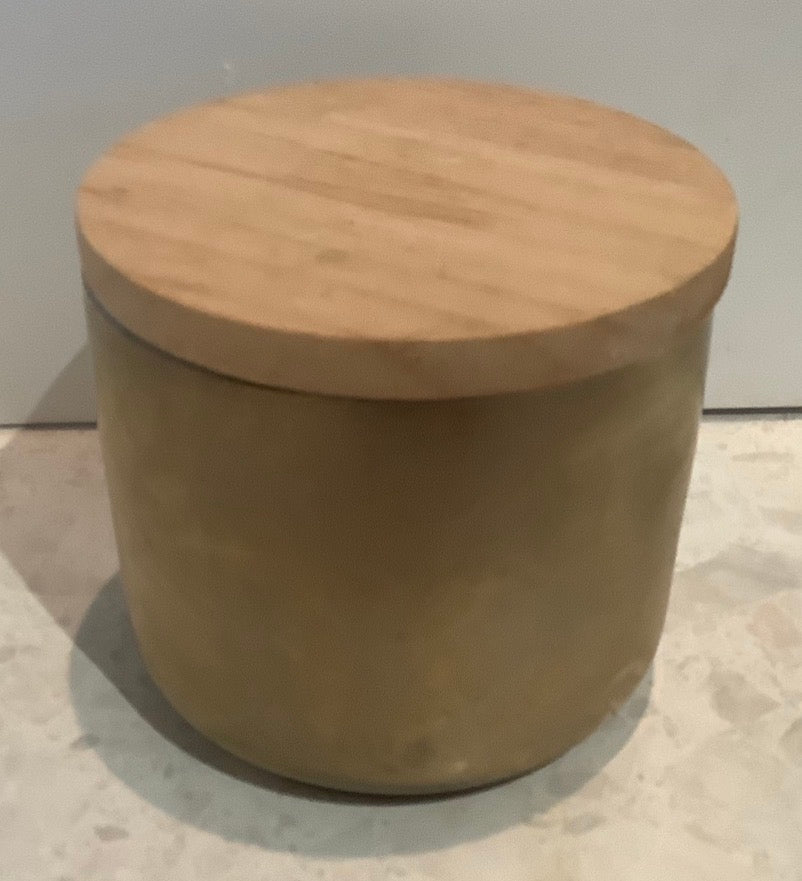 Approximately 350gm soy wax candle scented in lotus flower, or select your own scent- in these gorgeous marble style look containers with a wooden lid.